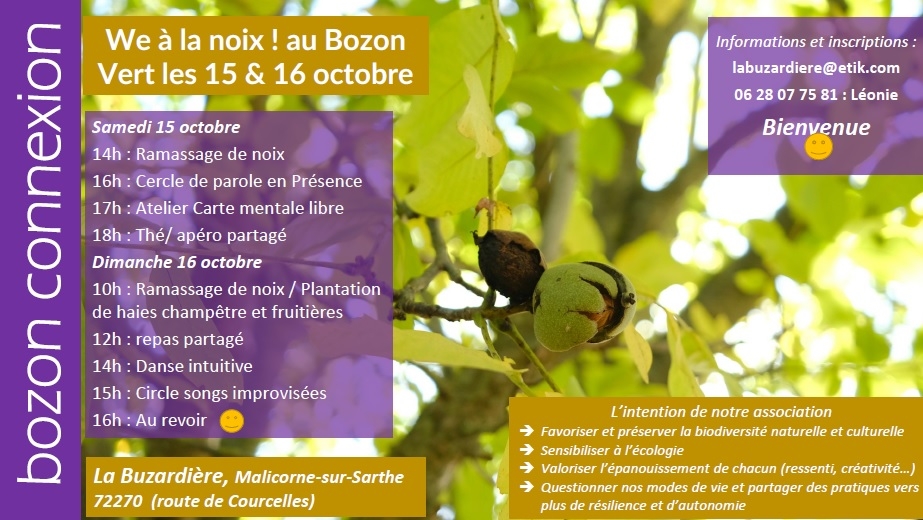 Des partenaires de notre association proposent un week-end à la noix, tout près de chez nous ; à Malicorne. Si cela vous tente, n’hésitez pas à prendre contact avec les organisateurs